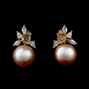 BRINCO EM OURO ROSÉ 18K COM PEROLAS E DIAMANTES