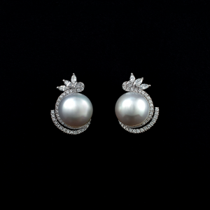 BRINCO EM OURO BRANCO 18K COM PEROLA BARROCA E DIAMANTE
