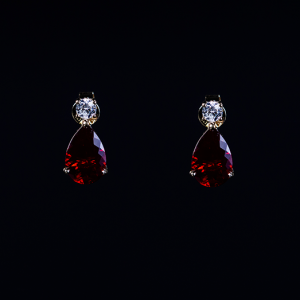 BRINCO EM OURO AMARELO 18K GOTA COM OPALA DE FOGO E DIAMANTES